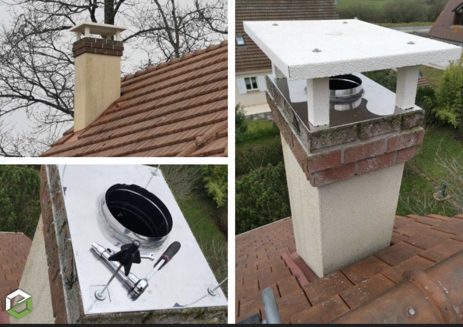 Pose et réparation de chapeau de cheminée 45